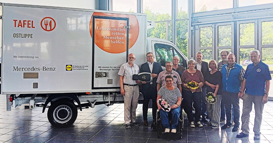 Mercedes und Lidl haben ihn mit ihrem Sponsoring und mit der Pfandspendenaktion auf den Weg gebracht: Den neuen Kühltransporter der Blomberger Ausgabestelle der Tafel Ostlippe. Der neue Kühlwagen steht nun vor der Blomberger Ausgabestelle der Tafel Ostlippe in der Hausmannstraße 18. Von hier aus fährt er zu den Supermärkten, den Discountern und einzelnen Bäckereien im Umkreis. Von dort holen die Mitarbeiter der Tafel Obst, Gemüse, Fleisch und Molkereiprodukte, Backwaren und andere Lebensmittel und bringen sie unter Einhaltung der Kühlkette in die Ausgabestelle.